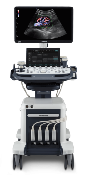 • Incorporates ALPINION’s signature probe technology, offering clear image quality with high sensitivity and a wide band for improved resolution, contrast, and uniformity.
